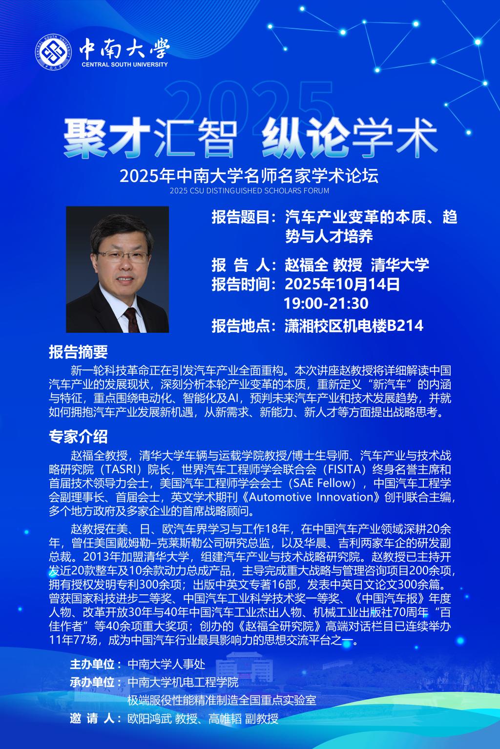 中南大学名师名家学术论坛——汽车产业变革的本质、趋势与人才培养
